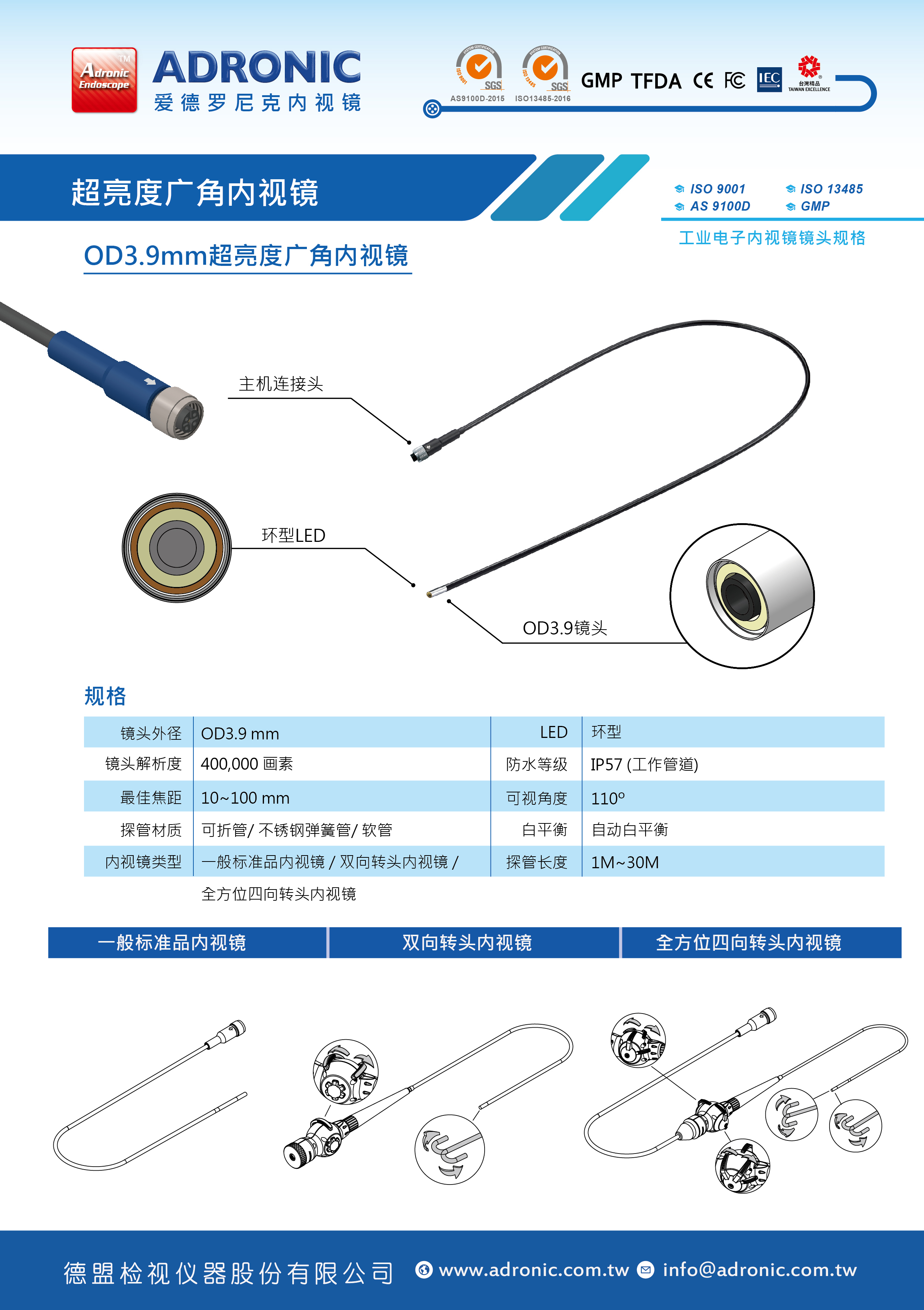 一般标准品内视镜 双向转头内视镜 全方位四向转头内视镜 |